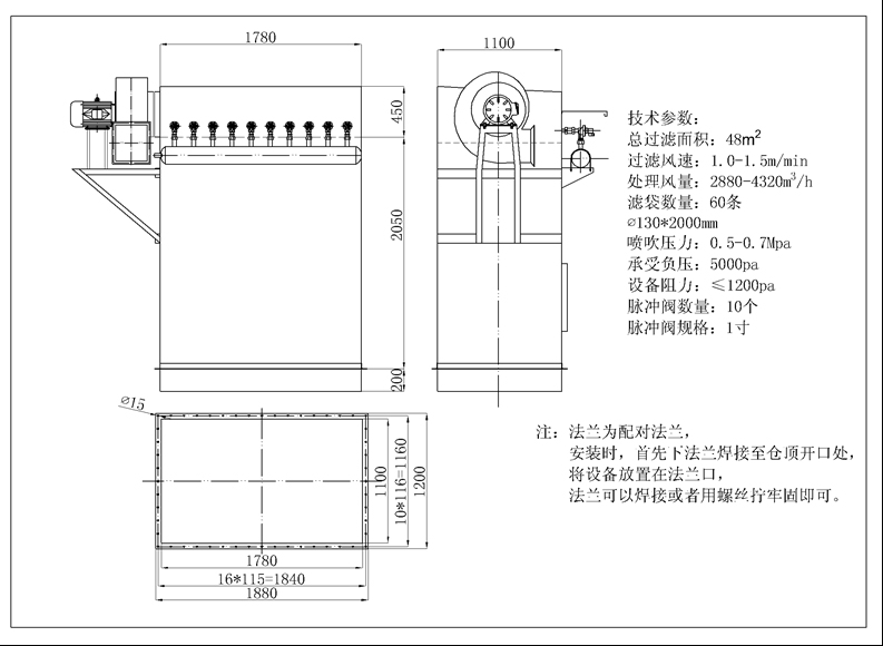 仓顶脉冲除尘器是比_小巧的_除尘设备,并且使用的行业也比_多,在冶金厂、铸造厂等行业均有使用,该设备的占地面积小、排灰方便、粉尘净化能力高。_厂家为用户提供仓顶脉冲除尘器结构图,让每一个想了解的用户都能够清楚地知道仓顶脉冲除尘器结构都有哪些部分组成,还可以清晰地知道仓顶脉冲除尘器的外形尺寸等信息。